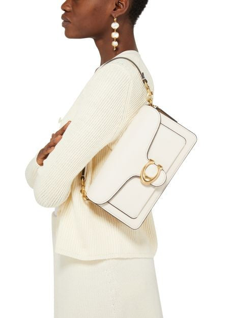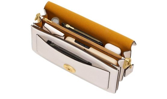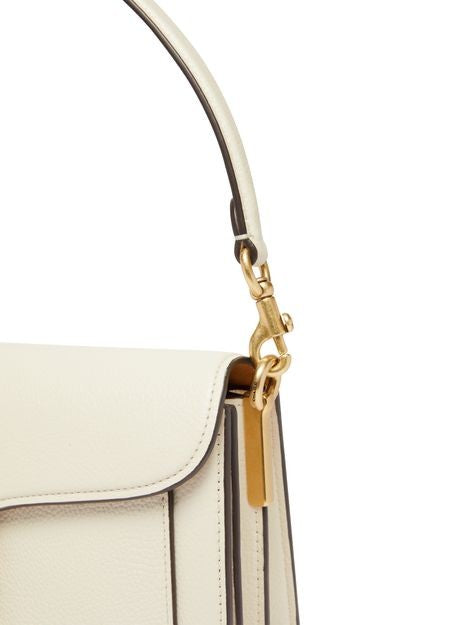 説明 : フラップ開閉式, フロントのメタリックロゴ, 金文字ロゴ, 手持ち, 斜め掛け, ゴールド仕上げ, シングルハンドル, 調節可能なストラップ, 取り外し可能なストラップ.
