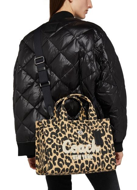 説明 : プリントロゴ, 前面ロゴ, 刻印ロゴ, ファスナー開閉, 手持ち, ワイドストラップ, ダブルハングル, レオタード柄, 総柄.