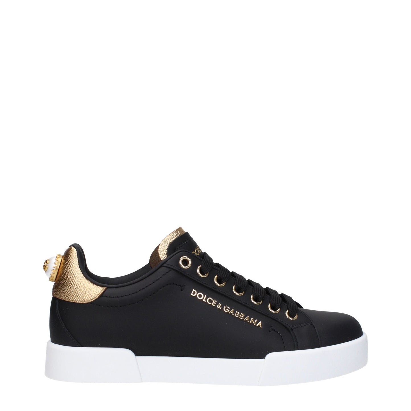 Dolce Gabbana ドルチェ&ガッバーナスニーカーポルトフィーノ女性レザーブラック/ゴールド
