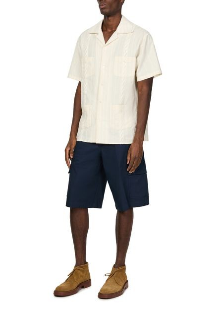 説明 : フロントボタン留め, 目に見えるステッチ, キューバ襟, シャツ, パッチポケット, 2フロントポケット, ブレストポケット, ショートスリーブ, カジュアルシャツ.