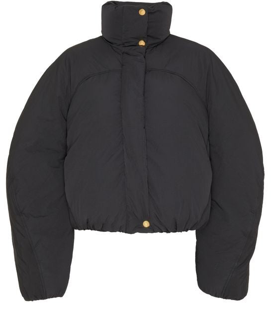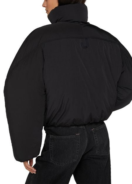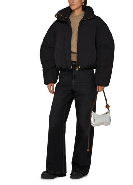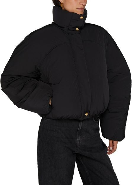 説明 : コンシールファスナーとスナップボタン, 装飾ボタン, ゴールド仕上げ, ラベルにロゴ, ショート, ロングスリーブ, ハイネック, カジュアルジャケット.
