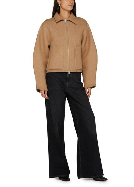 説明 : ファスナー開閉, ショート, サイドポケット, パッチポケット, ロングスリーブ, カジュアルジャケット, 暖かい素材.