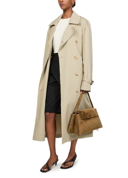 説明 : Shoulder bag, single handle, carry handle, logo at the back, logo in gold letters, suede, twist lock closure, interior pocket, visible topstitching, gold finish.