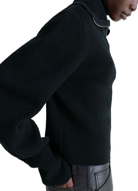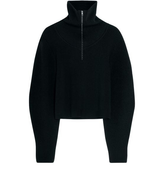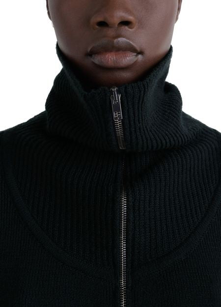 説明 : Ribbed, rollneck / turtleneck, long-sleeved, cuffed sleeves, zipper closure, regular fit.