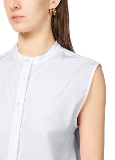 説明 : ハイネック, フロントボタン留め, 目に見えるステッチ, マンダリンカラー, ブラウス, ノースリーブ, アップリケロゴ, レギュラーレングス.