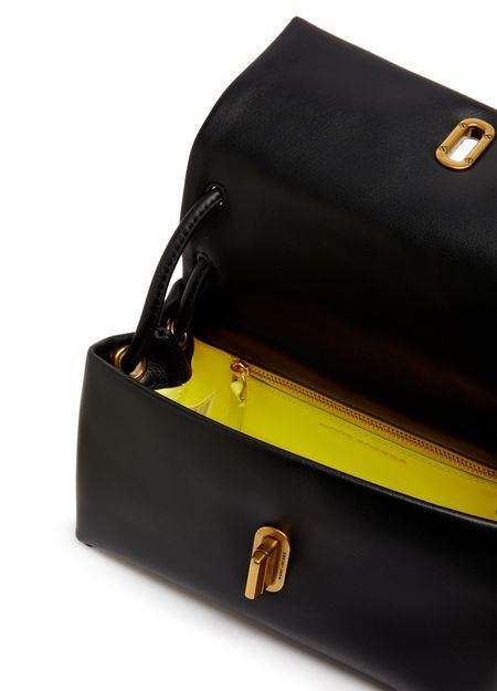 説明 : マグネットクロージャー, フラップ開閉式, シングルコンパートメント, ゴールド仕上げ, シングルハンドル, フロントのメタリックロゴ, ファスナー付き内ポケット, 飾りステッチ, 調節可能なストラップ, 手持ち.