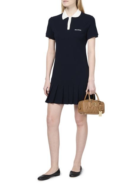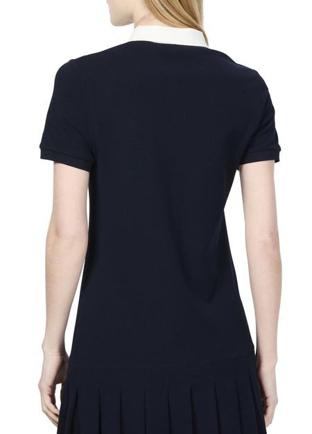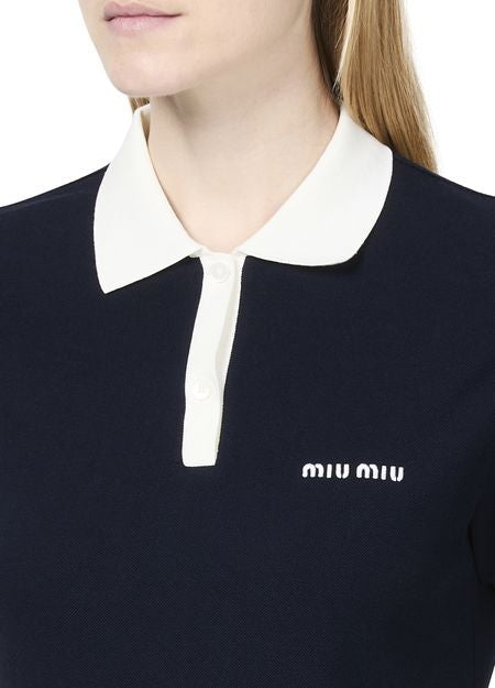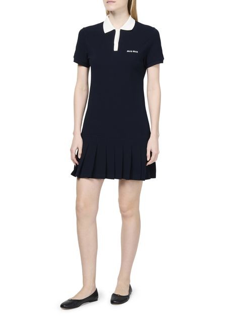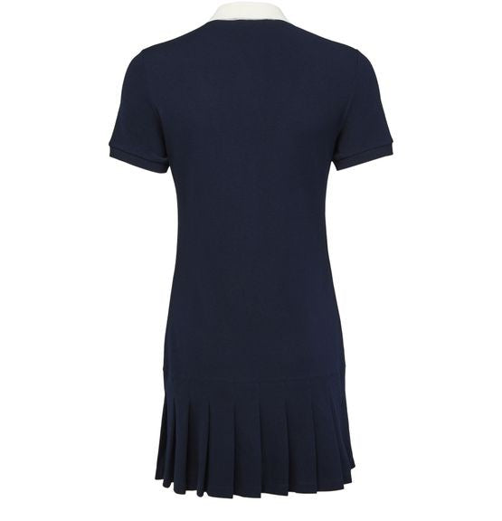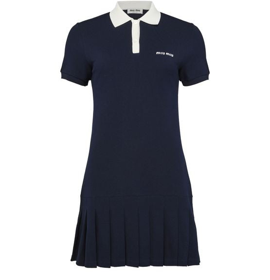説明 : フロントボタン留め, 胸元刺繍ロゴ, ミニドレス, ショートスリーブ, ニットドレス, ポロシャツ襟.