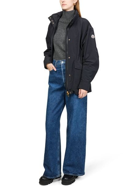 説明 : コンシールファスナーとスナップボタン, ショート, ハイネック, 前面ラージポケット, フラップポケット, ロングスリーブ, カジュアルジャケット.