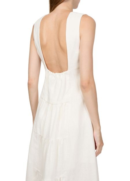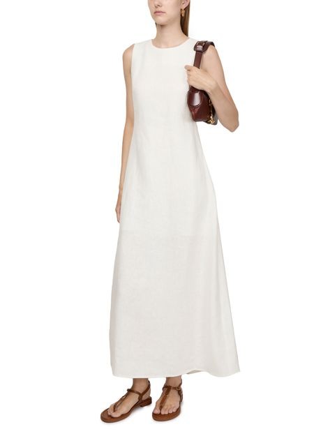 説明 : Loose fit, round neck, sleeveless, midi dress, ruffle details.