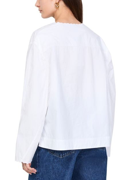 説明 : フロントボタン留め, レギュラーレングス, ロングスリーブ, ブラウス, クルーネック.