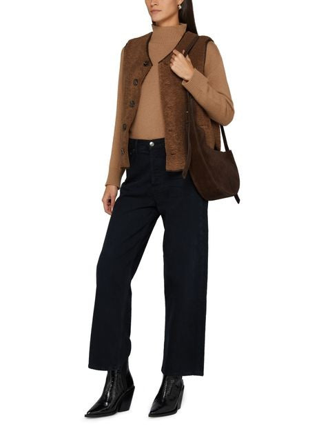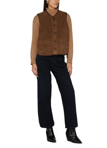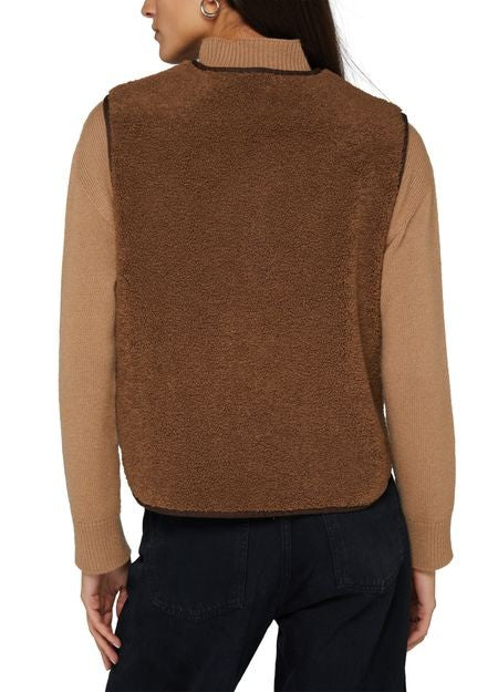説明 : フロントボタン留め, ファーディテール, アップリケロゴ, ショート, ノースリーブ, ウェルトポケット, 2フロントポケット, カジュアルジャケット, カラーレス.