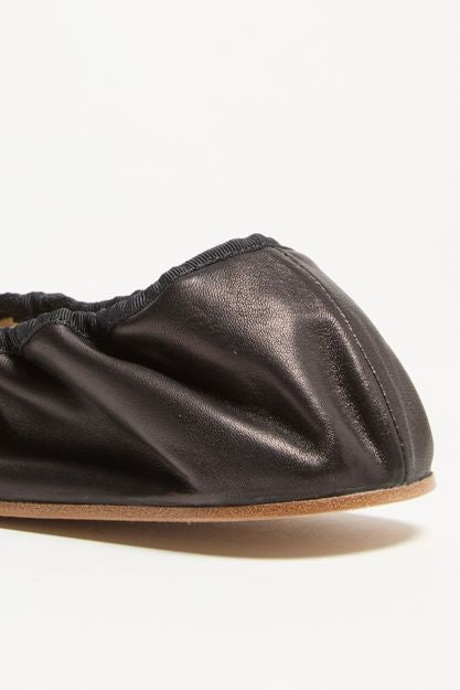 説明 : Ballet pumps, logo in gold letters, smooth leather, flat heel, round toe, logo-printed insole, pull-on design, laces and strap.