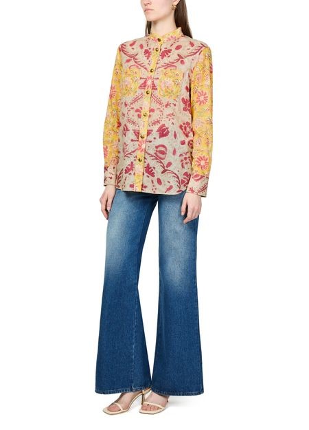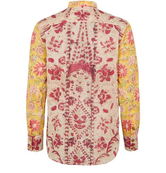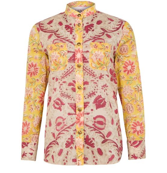説明 : フロントボタン留め, 目に見えるステッチ, 総柄, 花柄, ラウンドネック, マンダリンカラー, ボタン付きカフス, シャツ, ブレストポケット, ロングスリーブ.