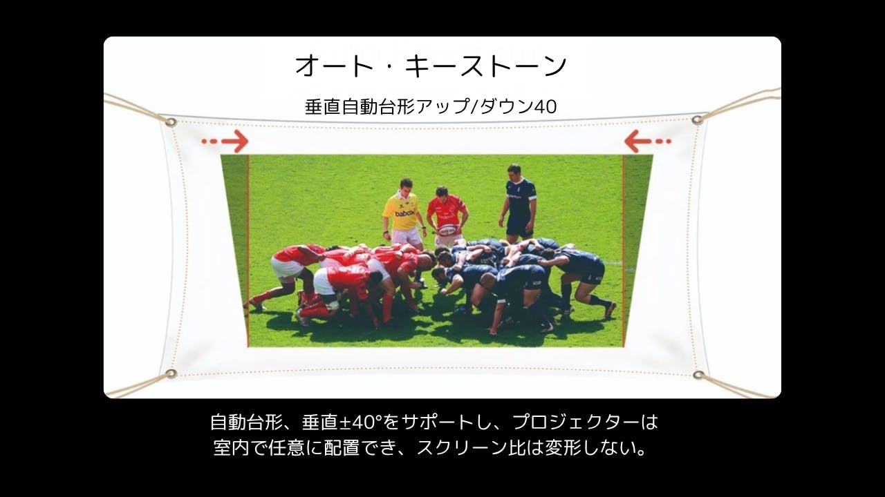 3000:1の高コントラストで鮮やかな色再現。最大200インチ対応。