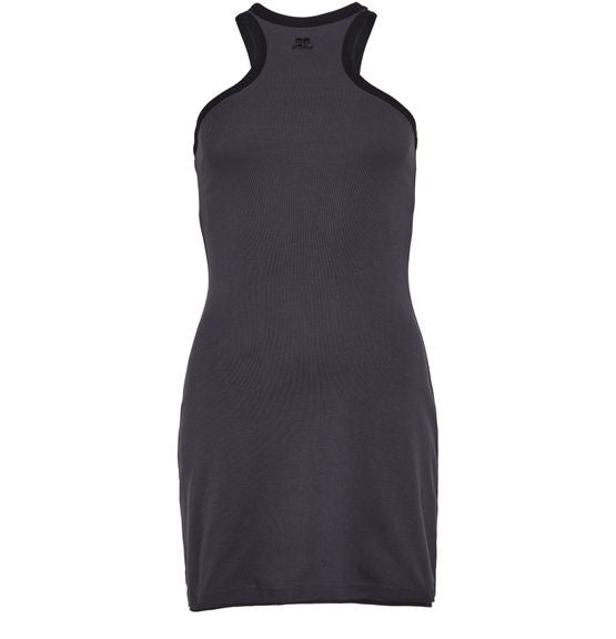 説明 : 前面ロゴ, 刺繍ロゴ, 目に見えるステッチ, ミニドレス, ノースリーブ, クルーネック, カクテル&イブニング, フィットウエスト.