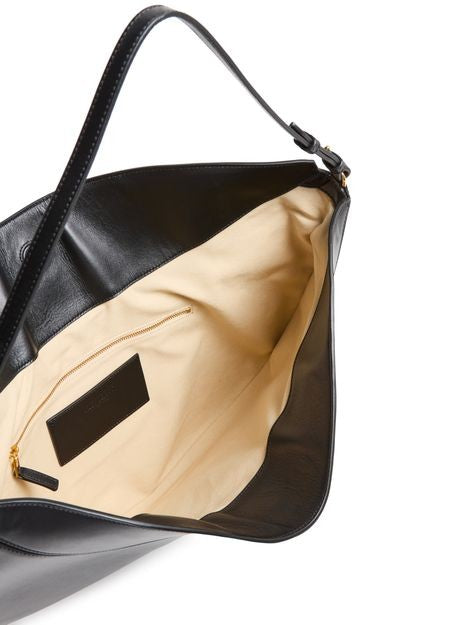 説明 : Hobo bag, shoulder bag, single handle, leather handle, smooth leather, magnetic closure, zippered interior pocket, visible topstitching.