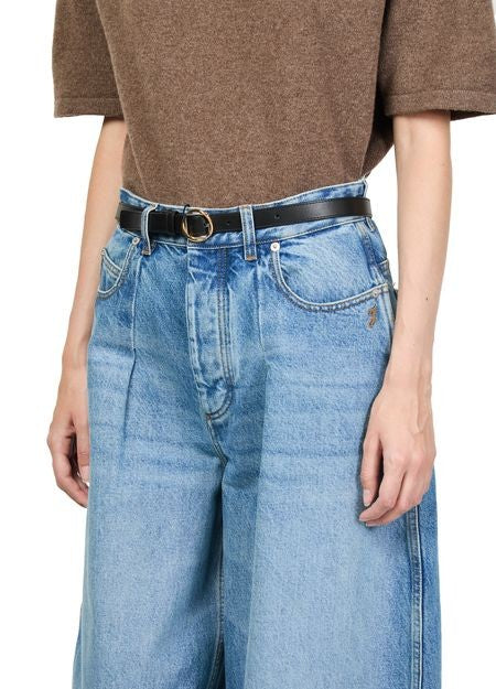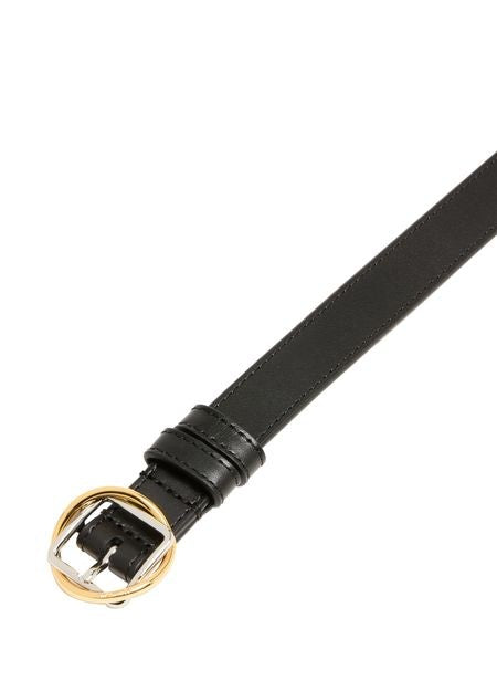 説明 : Tie belt, smooth leather, adjustable clasp, gold-tone hardware, silver-tone hardware.