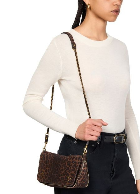 説明 : レオタード柄, フラップ開閉式, マグネットクロージャー, 刻印ロゴ, 前面ロゴ, 飾りステッチ, ミノディエール クラッチバッグ, 斜め掛け, 肩掛け, 取り外し可能なストラップ.