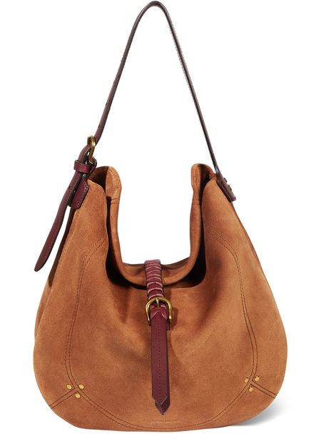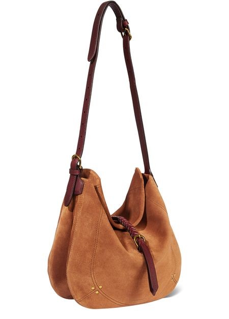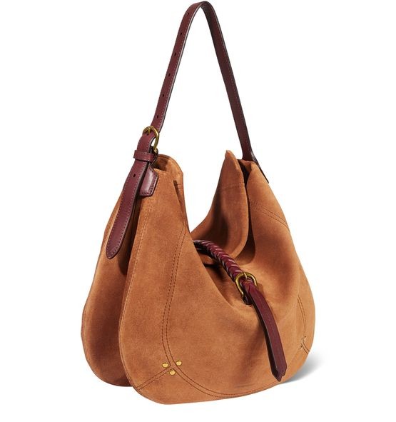説明 : Hobo bag, shoulder bag, suede, single handle, adjustable strap, visible topstitching, gold finish.