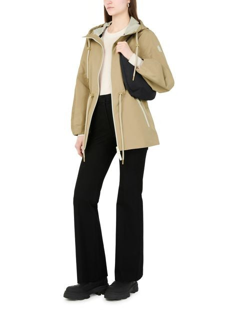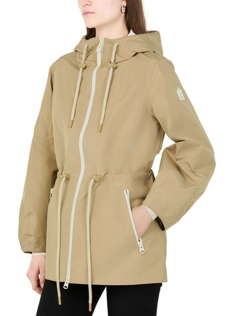 説明 : ファスナー開閉, ショート, フード, サイドポケット, ロングスリーブ, レインコート.