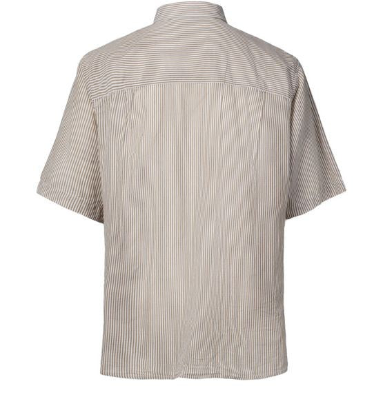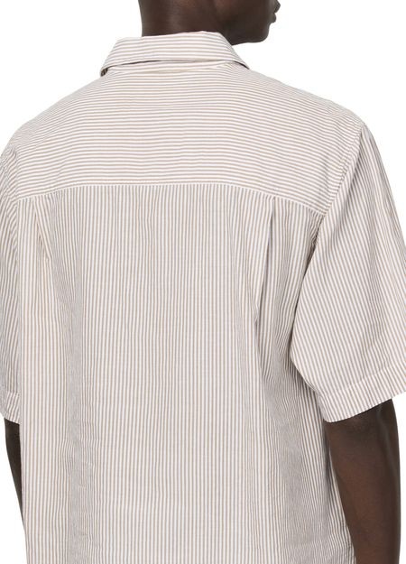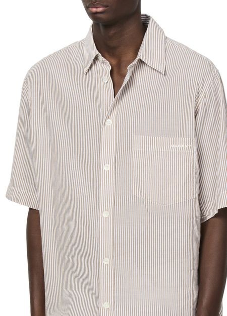 説明 : 胸元刺繍ロゴ, ラベルにロゴ, ブレストポケット, フロントボタン留め, ボタン留め, ショートスリーブ, 刺繍ディテール, シャツカラー, ボーダー柄.