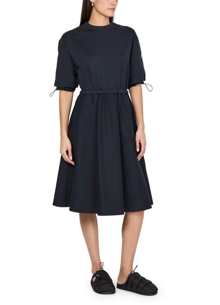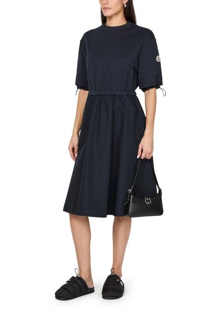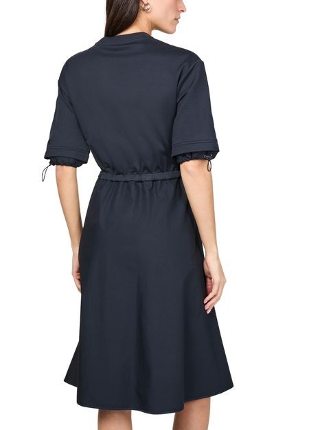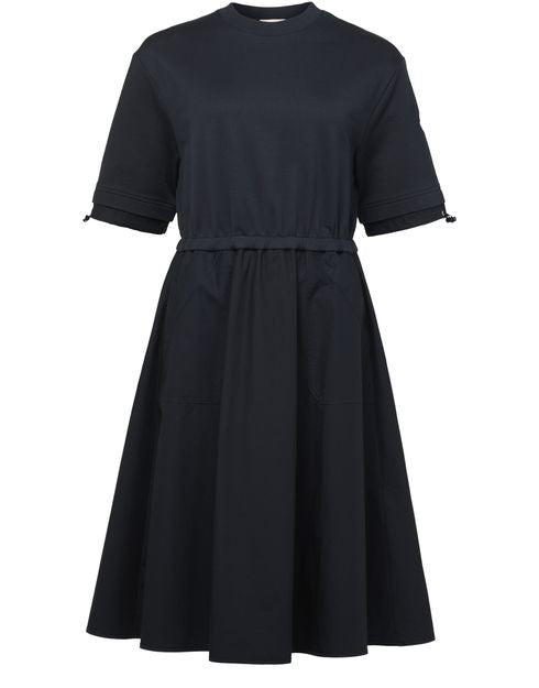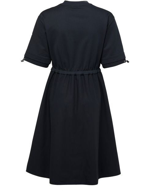 説明 : 目に見えるステッチ, 膝丈, ショートスリーブ, フレアドレス, クルーネック, フィットウエスト.