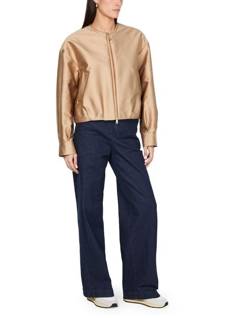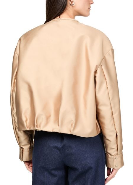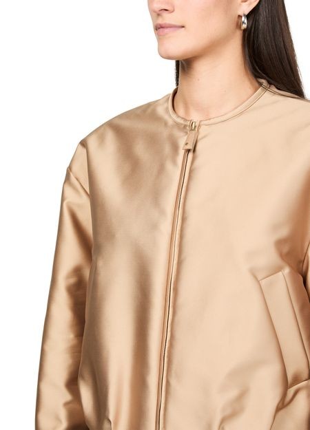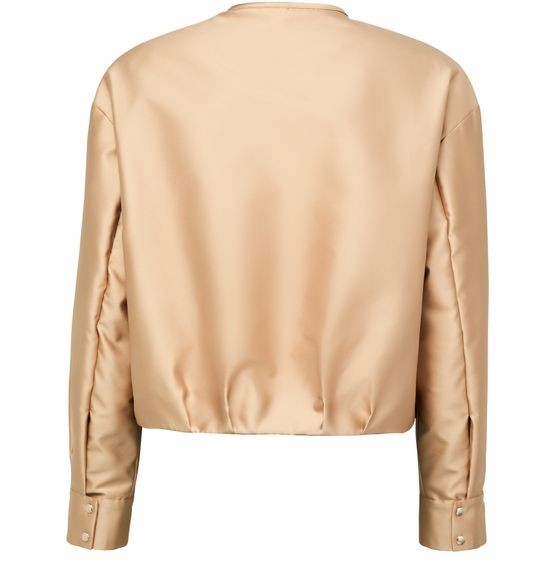 説明 : ファスナー開閉, アップリケロゴ, ショート, サイドポケット, ロングスリーブ, カジュアルジャケット, カラーレス.