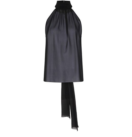 TOM FORD シルクジョーゼット製 ノースリーブ ラヴァリエール ブラウス