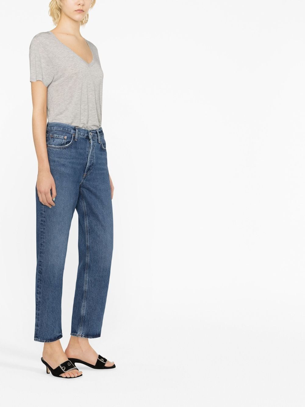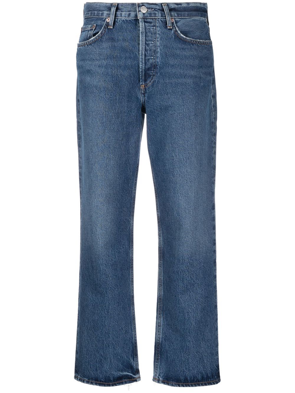 青、オーガニックコットン、クロップドレッグ、ストレートレッグ、太ももの泡立て効果、ベルトループ、ボタンフライの留め具、クラシックな5つのポケットを備えたアゴルデのクロップドジーンズ。 オーガニックコットンオーガニックコットン100%