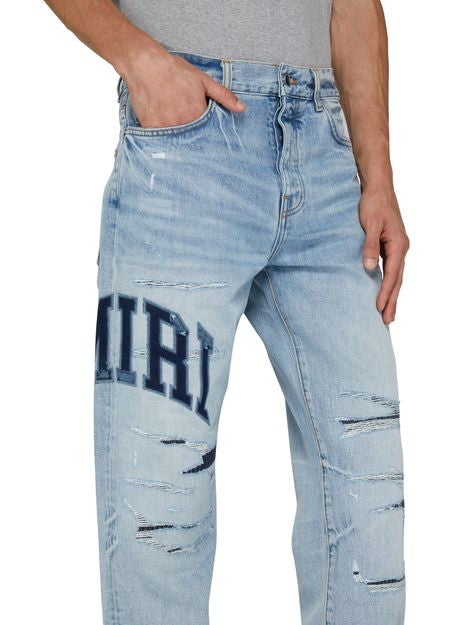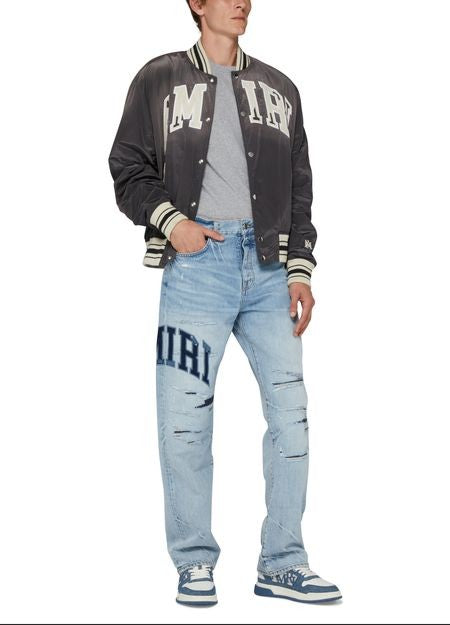 AMIRI バーシティ ロゴ入り リペア ストレートジーンズ