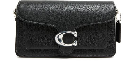 説明 : フラップ開閉式, シルバーフィニッシュ, シングルハンドル, 前面ロゴ, 銀文字ロゴ, 飾りステッチ, 取り外し可能なストラップ, 斜め掛け, ナローストラップ.