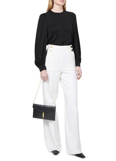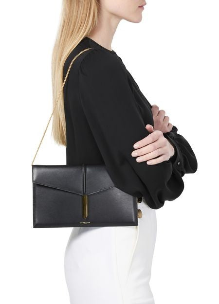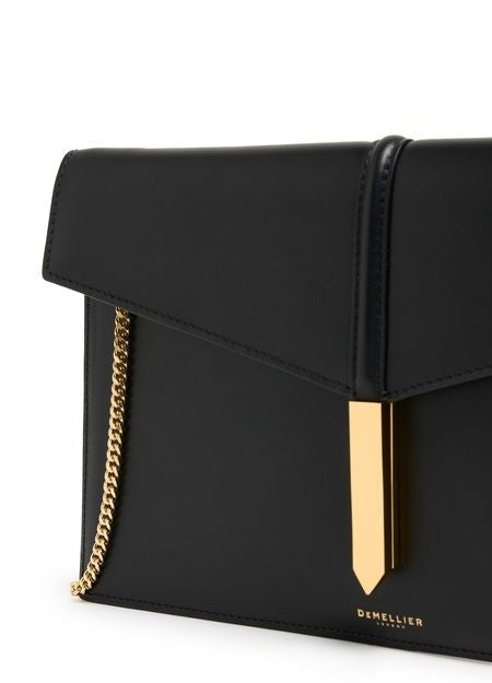説明 : マグネットクロージャー, フラップ開閉式, シングルコンパートメント, ゴールド仕上げ, シングルハンドル, 前面ロゴ, プリントロゴ, 飾りステッチ, 取り外し可能なストラップ, 斜め掛け.