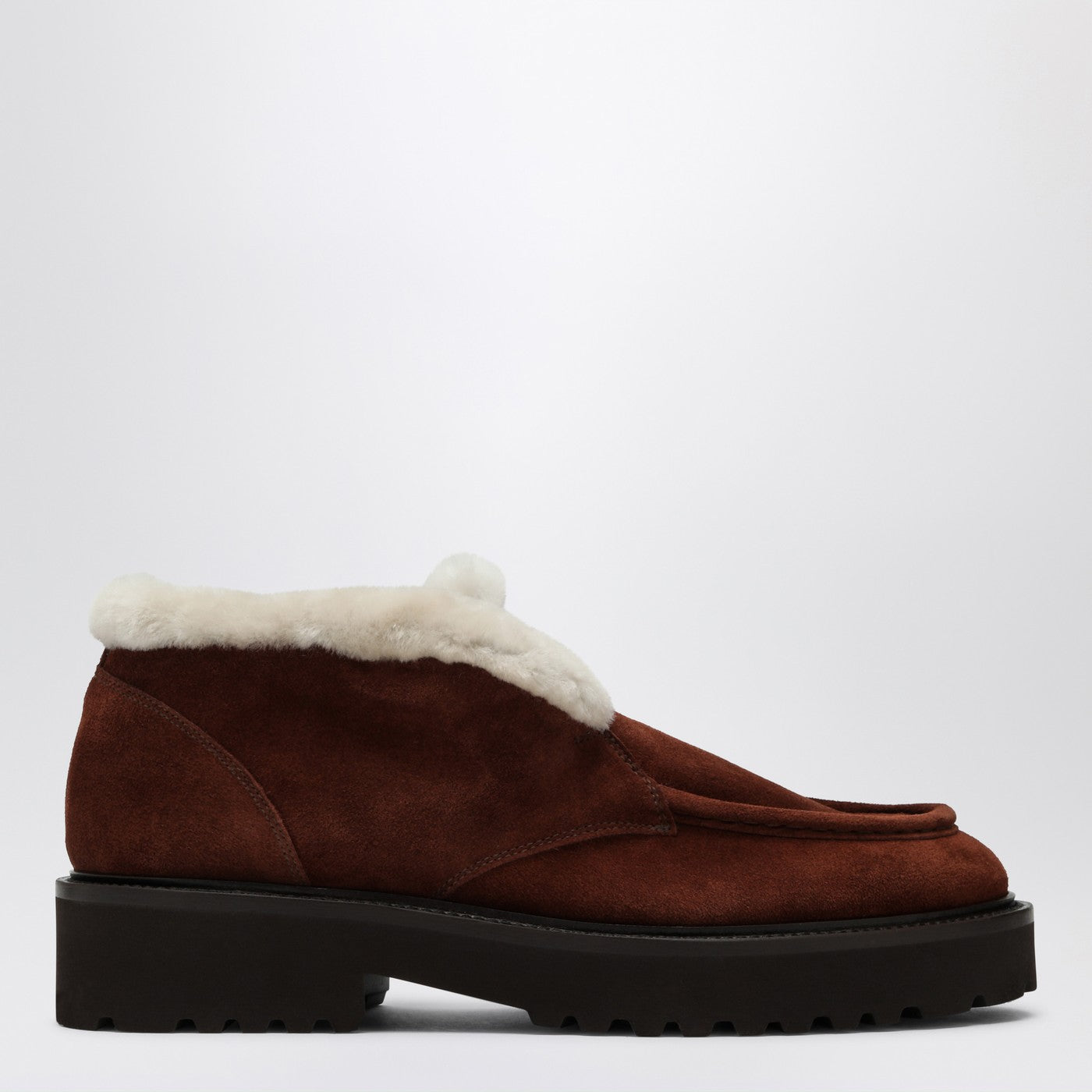 Doucals ドゥーカル 'S 毛皮の茶色のスエードモッカシン
