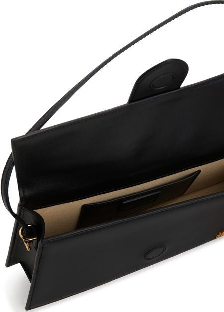 説明 : ミディアムサイズバッグ, レザーハンドル, ハンドキャリー, 内ポケット, フロントにメタリックロゴ, ゴールドフィニッシュ.