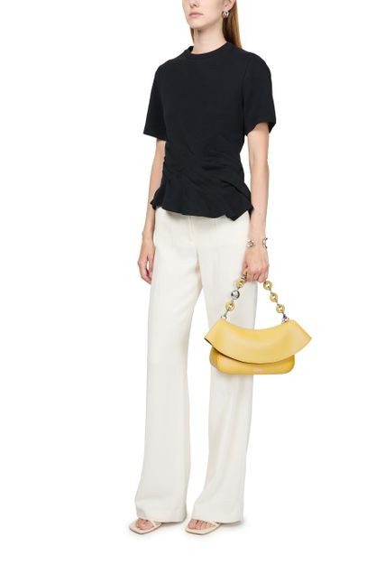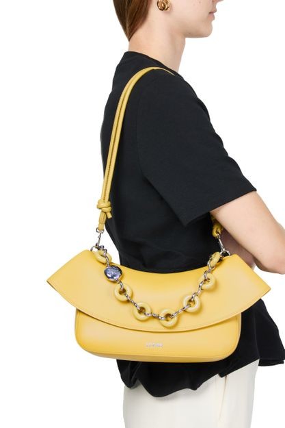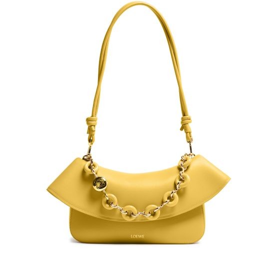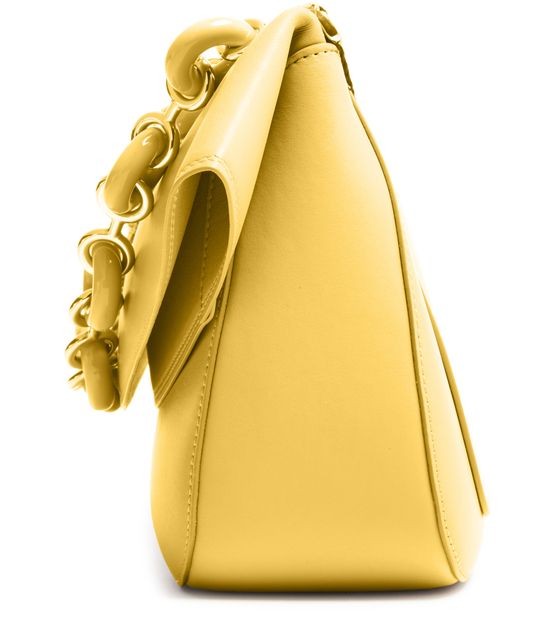 説明 : Shoulder bag, smooth leather, single handle, decorative chain strap, visible topstitching, front logo, logo in gold letters, gold finish.