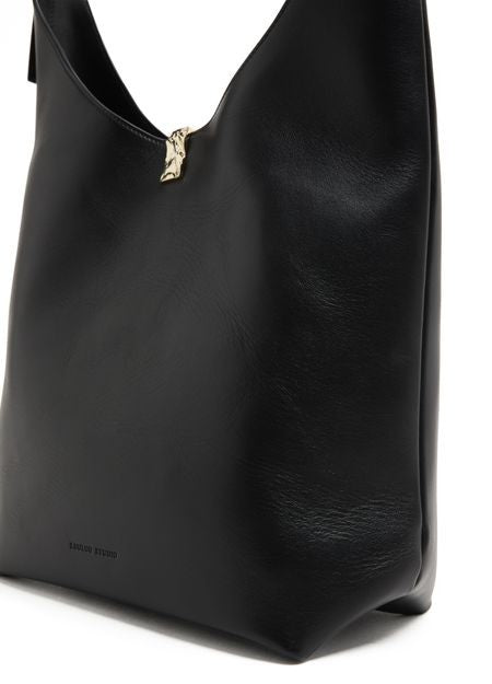 説明 : ゴールド仕上げ, シングルハンドル, 前面ロゴ, 飾りステッチ, 肩掛け, ナローストラップ.