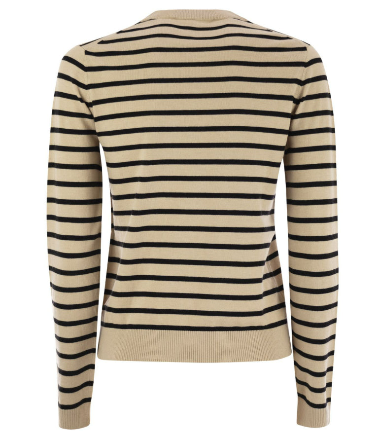 • ストッキングステッチ仕上げの柔らかいフィットシルクとウールのセーター。乗組員の首、長袖、リブ付きのエッジ
