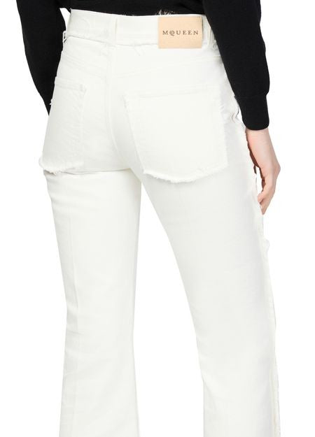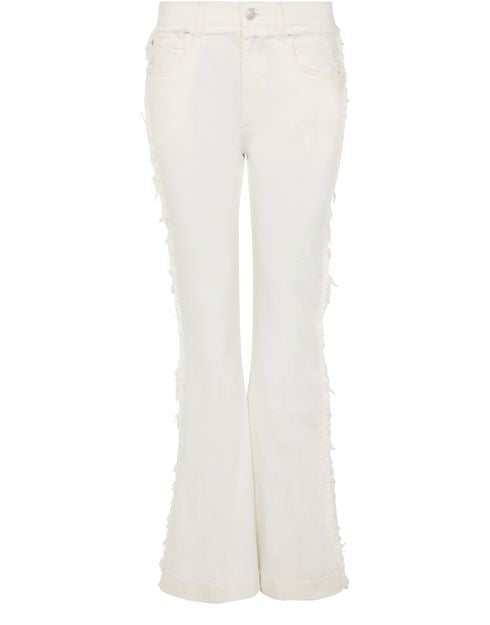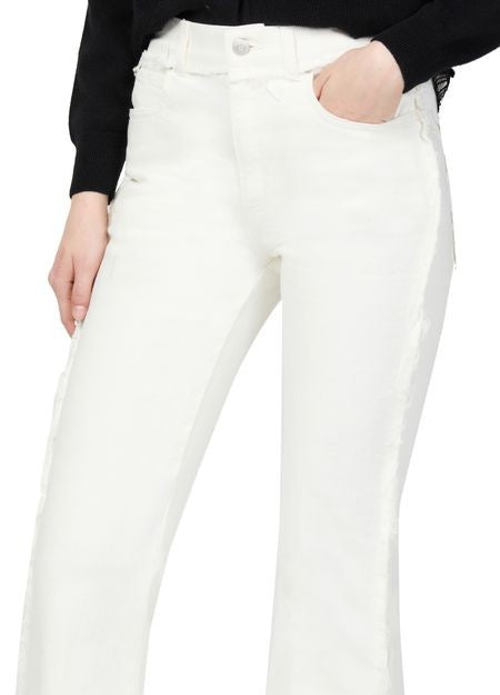 説明 : ボタン&コンシールファスナー開閉, 目に見えるステッチ, 背面レザーロゴ, ベルトループ, ファイブポケットスタイル, ブーツカット, アンクル丈.