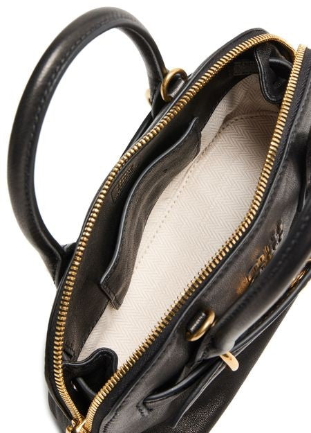 説明 : ファスナー開閉, シングルコンパートメント, ゴールド仕上げ, ダブルハングル, フロントのメタリックロゴ, プリントロゴ, エンボス加工ロゴ, 内側パッチポケット, 飾りステッチ, 取り外し可能なストラップ.