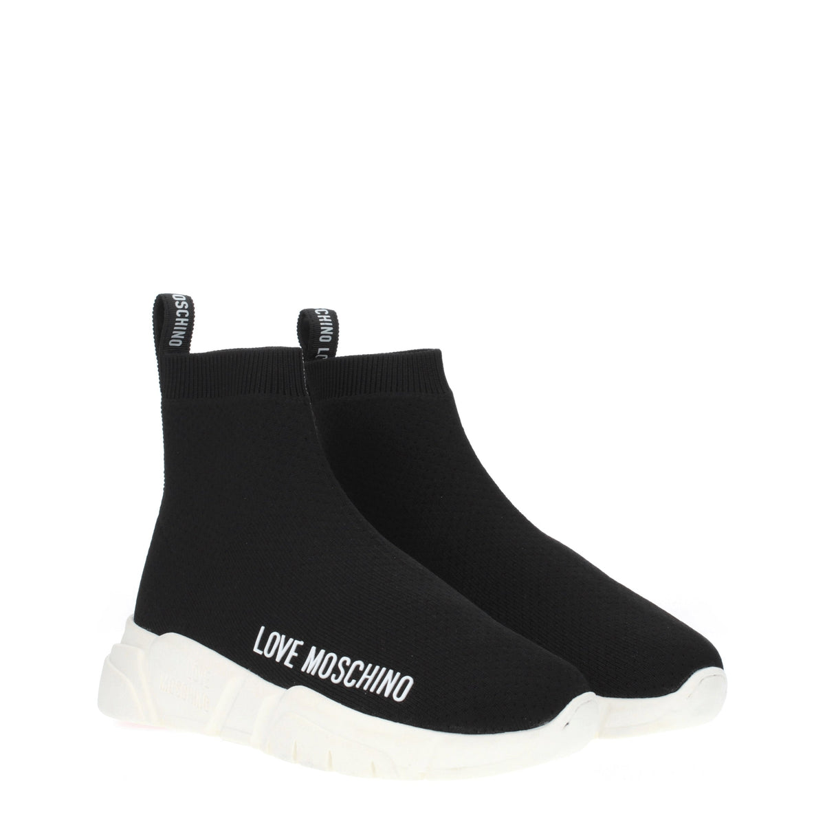 モスキーノスニーカーの女性布地黒/白が大好きです