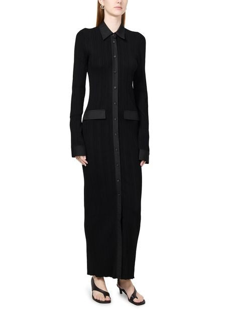 説明 : 2フロントポケット, フラップポケット, ロングスリーブ, フロントボタン留め, アップリケロゴ, スリムフィット, ロング, ニットドレス, 目に見えるステッチ, シャツカラー.