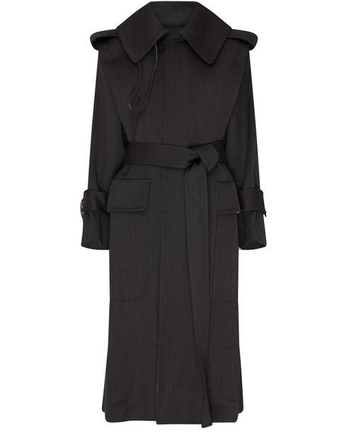 説明 : ロング, カラー, 2フロントポケット, フラップポケット, ロングスリーブ, ベルトコート.