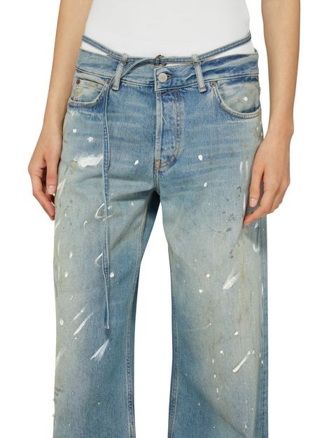 説明 : アンクル丈, ボタン&コンシールファスナー開閉, ファイブポケットスタイル, パッチディテール, ベルトループ, ワイドカット.