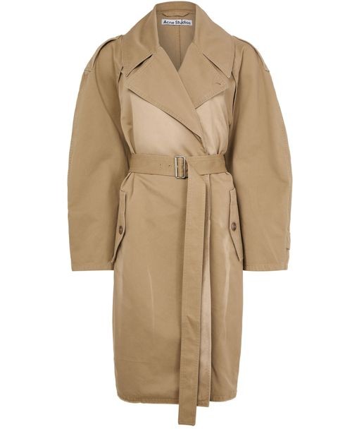 説明 : カラー, ノッチドカラー, トレンチコート, ベルトコート, フラップポケット, サイドポケット, ロングスリーブ, アップリケロゴ, ラップアラウンド, 膝丈.