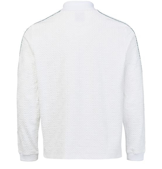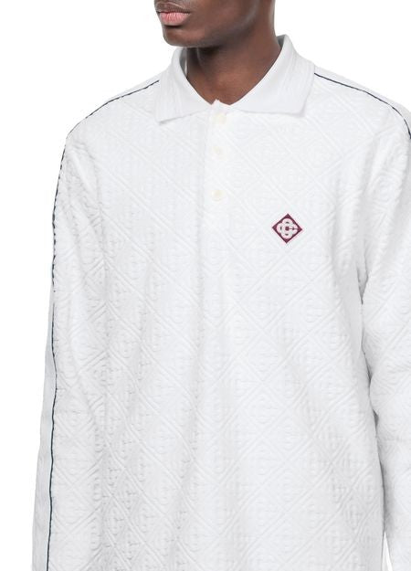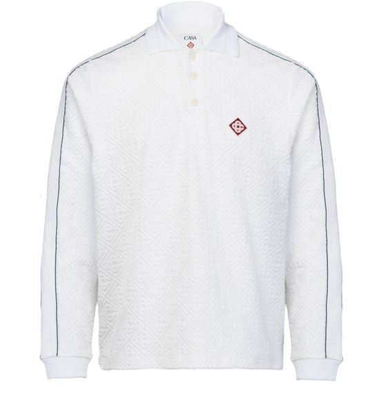 説明 : フロントボタン留め, 胸元ロゴ, 目に見えるステッチ, ロングスリーブ, ポロシャツ, ポロシャツ襟.