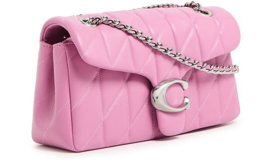 説明 : フラップ開閉式, フロントのメタリックロゴ, 飾りステッチ, シルバーフィニッシュ, ミニバッグ, 斜め掛け, スマートフォン用内ポケット, デコレーションチェーンストラップ, シングルハンドル.