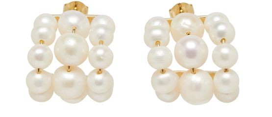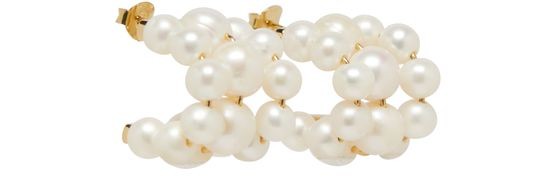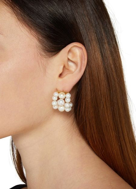 説明 : スライドクロージャー, ペアでの販売, ビーズ詳細 / パール詳細, イヤリング, ゴールド仕上げ.