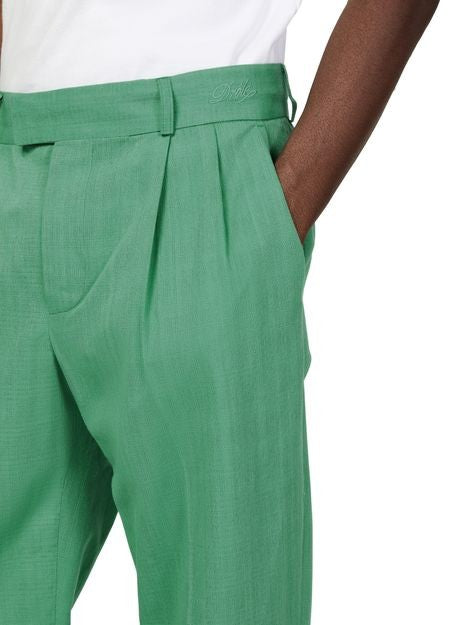 説明 : コンシールファスナー, 目に見えるステッチ, 前面プリーツ, カジュアルパンツ, ウェルトポケット, バックポケット, スリムフィット, ベルトループ, アンクル丈.
