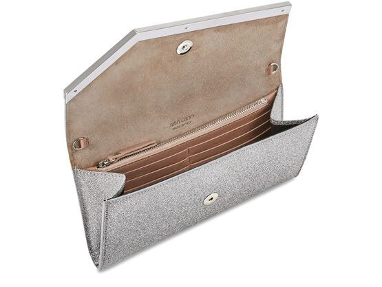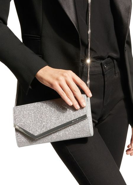 JIMMY CHOO Emmie シルバーグリッター レザー ソワレクラッチ