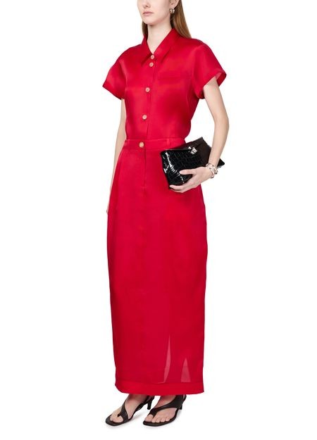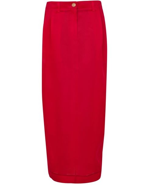 説明 : ベルトループ, バックダーツ, ボタンファスナー開閉, バックポケット, 目に見えるステッチ, ミディ, ストレートスカート, ベルト付きウエスト.